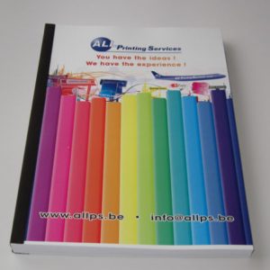 This determines the price. The color of the glued band can be chosen. The most common color is black. We recommend to stay within 400 pages when using a fastback system. Directly after printing the fastback can be placed and an order from one copy on can be delivered in one day.