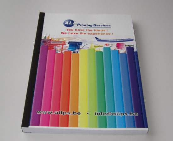 The glued brochure or fastback is a book of several pages, digitally printed or copied. The glued brochure is not constraint by the number of pages (one does not need a multiple of four), this in contrast to the booklet. The pages of the brochure can be printed on one side (1 page per sheet) or both sides of a sheet (2 pages per sheet). The number of sheets determine how large the glued band (strip) must be the.