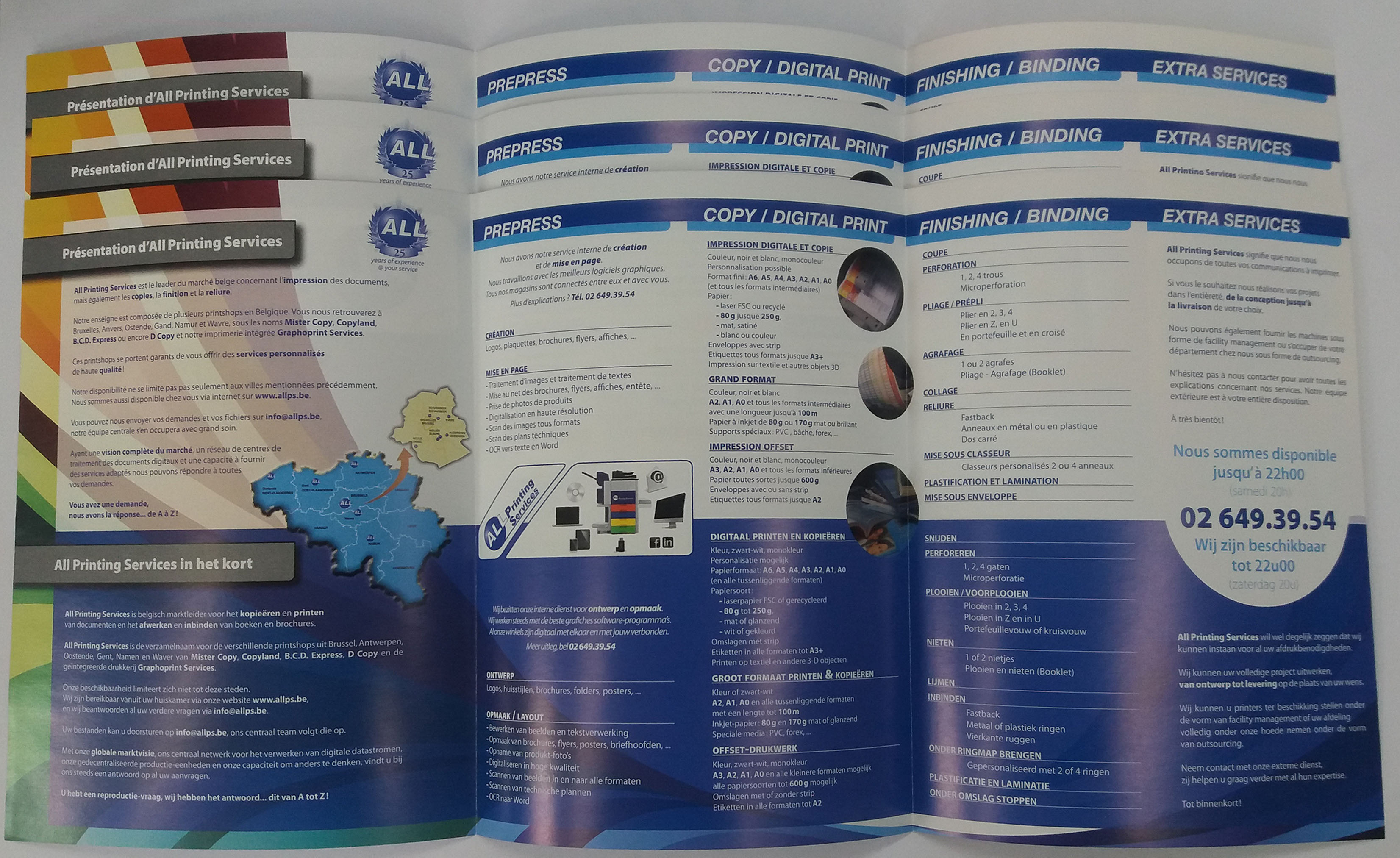 Alles is mogelijk. Folders worden vaak digitaal geprint of gekopieerd en heeft een heel goede prijs kwaliteit verhouding bij kleine hoeveelheden, laat personalisering toe en kan op 1 dag geleverd worden. Ook worden folders gedrukt in offset om de eindkwaliteit te verhogen en een lagere kostprijs te hebben voor grotere hoeveelheden. De gemiddelde doorlooptijd voor een brochure in offset gedrukt is 5 werkdagen.